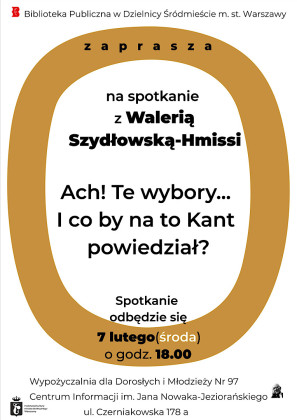 Biblioteka Publiczna w Dzielnicy Śródmieście m.st. Warszawy zaprasza na spotkanie z Walerią Szydłowską-Hmissi pt. "Ach! Te wybory... I co by na to Kant powiedział".