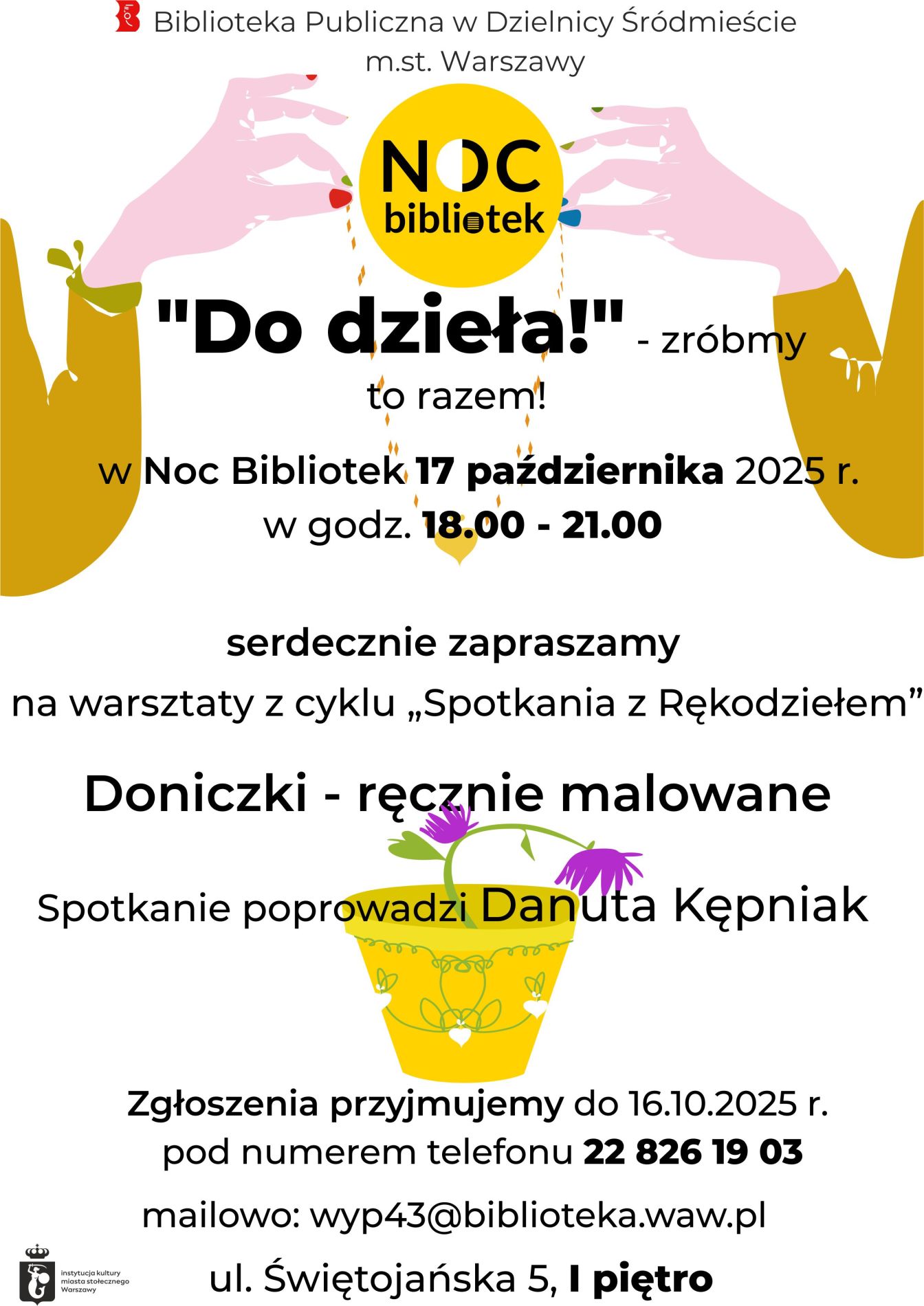Rozwijanie i zaspokajanie potrzeb czytelniczych mieszkańców dzielnicy Śródmieście i Miasta Stołecznego Warszawy oraz upowszechnianie wiedzy i rozwoju kultury.