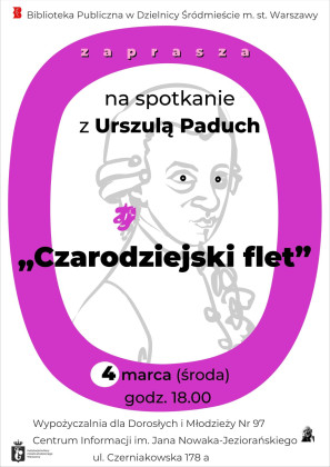 Biblioteka Publiczna w Dzielnicy Śródmieście m.st. Warszawy zaprasza na spotkanie z Urszulą Paduch pt. "Czarodziejski flet".