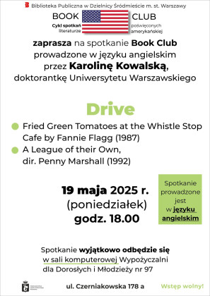 Biblioteka Publiczna w Dzielnicy Śródmieście m.st. Warszawy zaprasza na spotkanie Book Club prowadzone w języku angielskim przez Karolinę Kowalską, doktorantkę Uniwersytetu Warszawskiego.