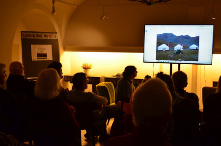 13 lutego 2024 roku w „Piwnicy pod Regałami” odbyło otwarte spotkanie Polskiego Klubu Górskiego. Anna Okopińska opowiedziała o doświadczeniach dwóch wypraw do Kirgistanu. Opowieść o pięknie przyrody kraju, którego 90% powierzchni stanowią góry ilustrowana była fotografiami. Licznie przybyłe audytorium podążało za narracją o egzotyce wysokogórskich hal na których pasą się swobodnie tabuny koni, krowy, kozy i owce; a pasterze mieszkają przez całe lato w jurtach rozstawionych nad malowniczymi jeziorami. Autorka mówiła o niezwykłych wrażeniach i możliwościach pieszej wędrówki, której towarzyszą olśniewające widoki na lodowcowe partie gór Tian Szan.