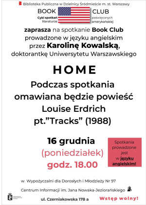 Podczas spotkania omawiana będzie powieść Louise Erdrich pt. "Tracks" (1988).