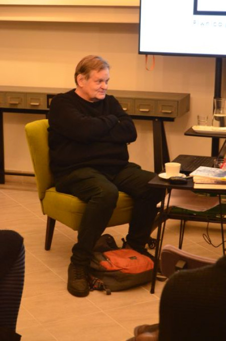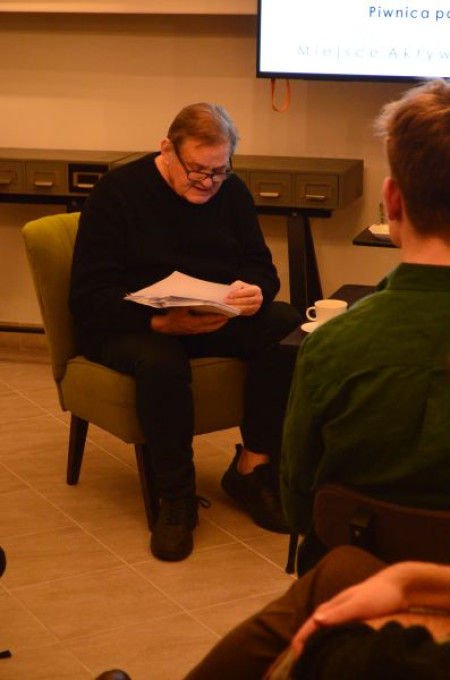 Tak też było i tym razem. Wybitny poeta, pisarz i tłumacz szybko nawiązał kontakt z audytorium dopuszczając słuchaczy do zwierzeń uniwersalnych, ale też i osobistych. Braterską atmosferę przenikania istoty Jego pisarstwa budowało prowadzenie spotkania przez Iwonę Smolkę, biegłą w tajnikach poezji.