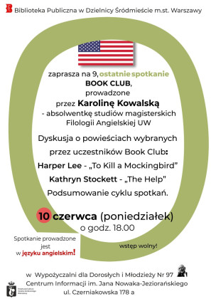 W dniu 10 czerwca o godzinie 18:00 będziemy dyskutować o powieściach wybranych przez uczestników Book Club: Harper Lee - "To kill a Mockingbird" i Kathryn Stockett - "The Help". Zrobimy podsumowanie cyklu.
