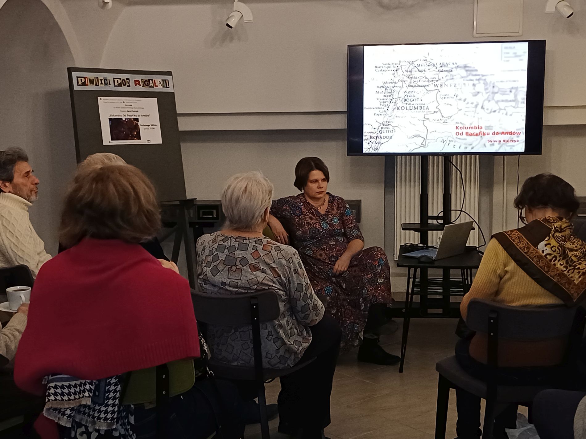 24 lutego 2026 roku o godzinie 17:00 odbyło się kolejne otwarte spotkanie Polskiego Klubu Górskiego. W odległe regiony Ameryki Południowej poprowadziła przybyłych do "Piwnicy pod Regałami" Sylwia Kulczyk. Zgodnie z wyrażona w tytule zapowiedzią "Kolumbia. Od Pacyfiku do Andów" podążaliśmy przez przestrzeń oceanu i zielony chaos selwy. Fotografie działały na wyobraźnię i wzmacniały przesłanie, że Kolumbia da się lubić. Nieobecni wiele stracili.