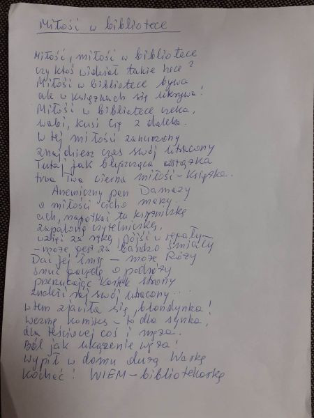 8 maja spontaniczna Grupa DZIELNY KOLEKTYW dla uczczenia Tygodnia Bibliotek pisała kolektywnie sztukę pt. "Miłość, miłość w bibliotece" – nacechowaną programowo dramatyczną jednoaktówkę o zabarwieniu romantycznym.