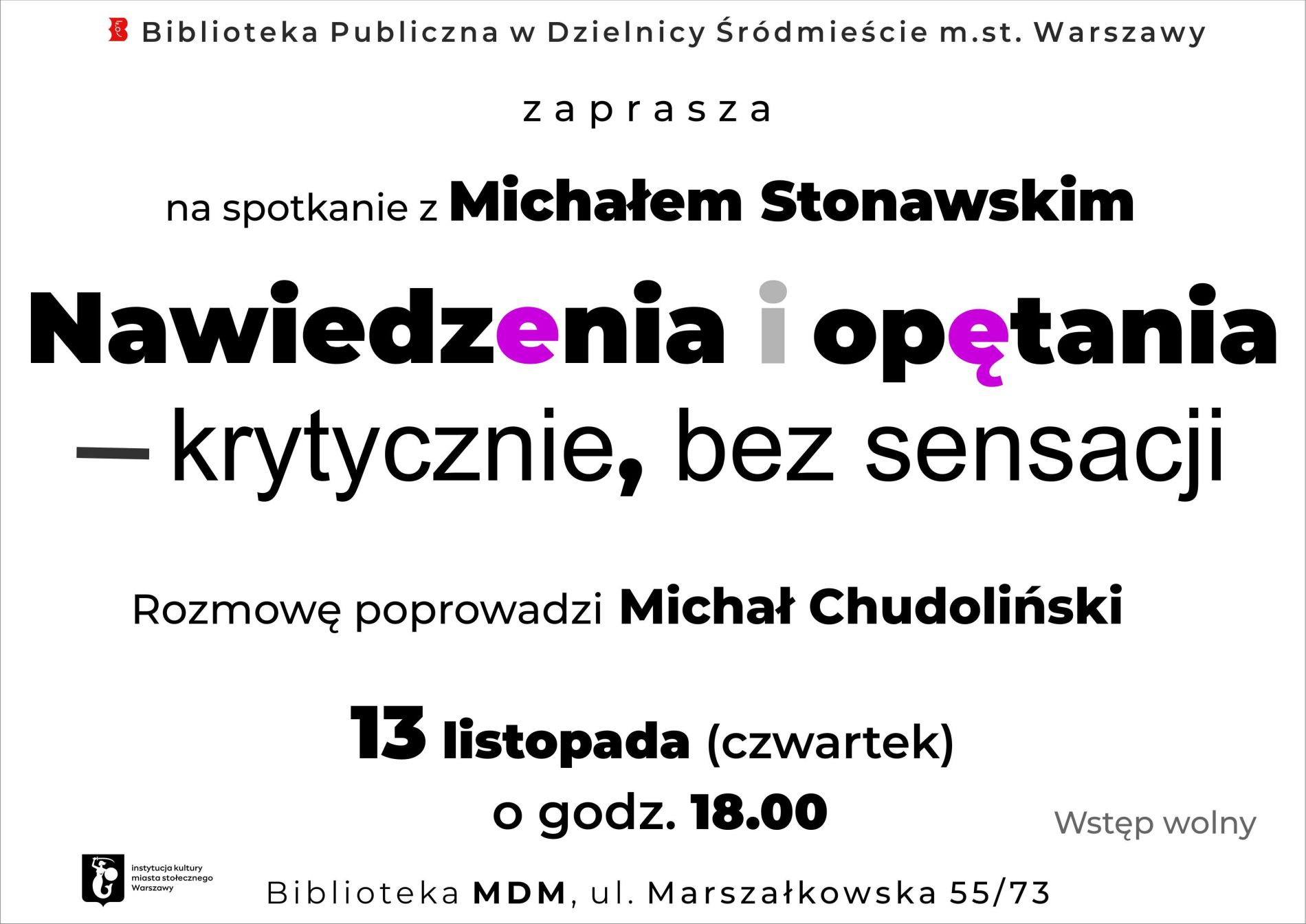 Biblioteka Publiczna w Dzielnicy Śródmieście m.st. Warszawy zaprasza na spotkanie z Michałem Stonawskim pt. "Nawiedzenia i opętania - krytycznie, bez sensacji". Rozmowę poprowadzi Michał Chudoliński.