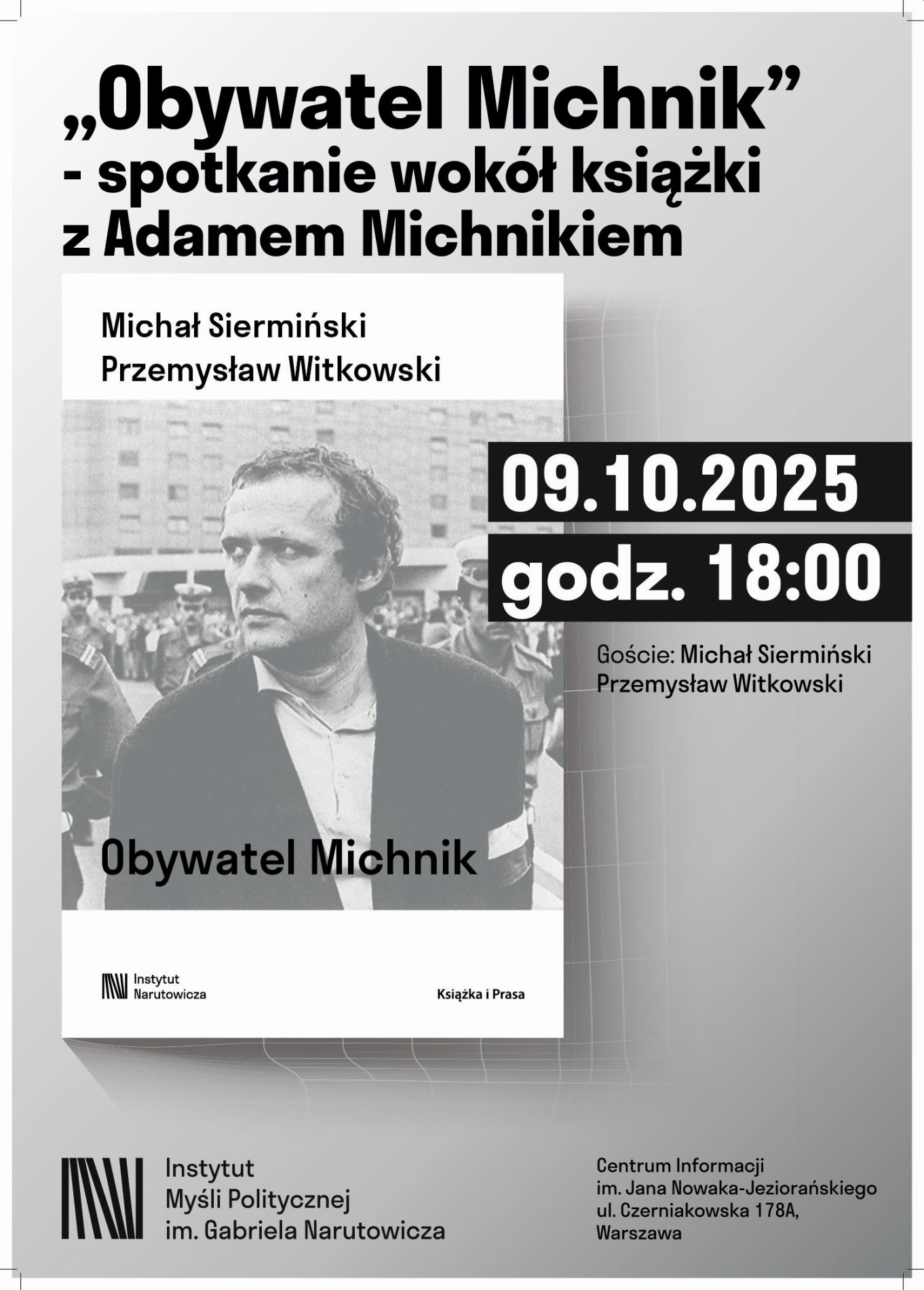 Spotkamy się 9 października o godzinie 18:00 w Centrum Informacji im. Jana Nowaka Jeziorańskiego przy ulicy Czerniakowskiej 178a.