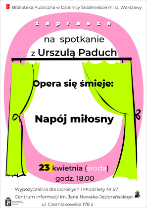 Biblioteka Publiczna w Dzielnicy Śródmieście m.st. Warszawy zaprasza na spotkanie z Urszulą Paduch pt. "Opera się śmieje: Napój miłosny".