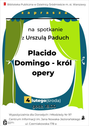 Biblioteka Publiczna w Dzielnicy Śródmieście m.st. Warszawy zaprasza na spotkanie z Urszulą Paduch pt. "Placido Domingo - król opery".