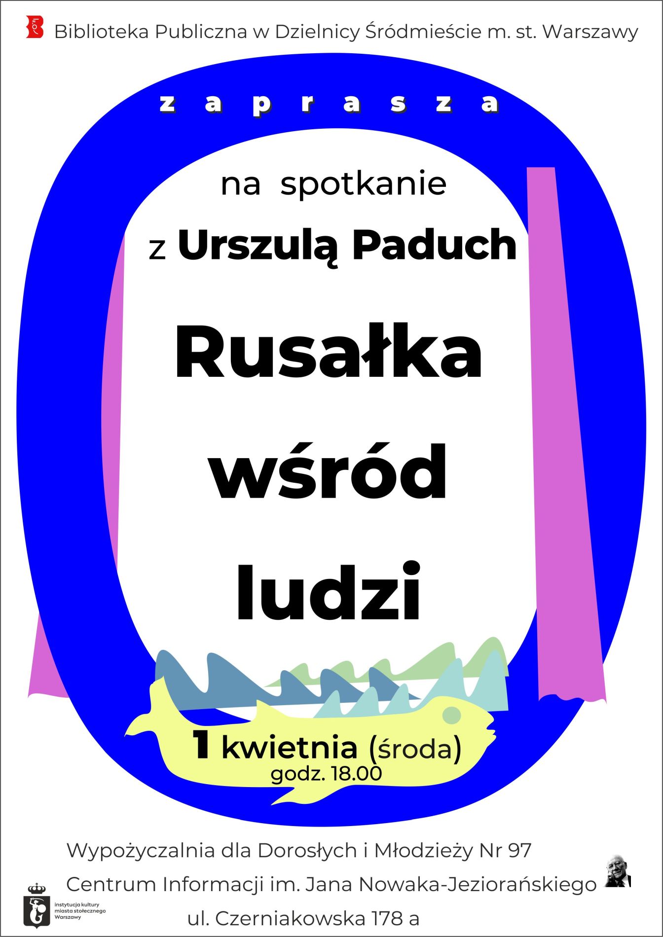 Biblioteka Publiczna w Dzielnicy Śródmieście m.st. Warszawy zaprasza na spotkanie z Urszulą Paduch pt. "Rusałka wśród ludzi".
