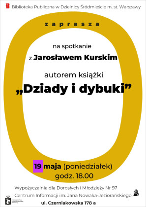 Biblioteka Publiczna w Dzielnicy Śródmieście m.st. Warszawy zaprasza na spotkanie z Jarosławem Kurskim, autorem książki "Dziady i dybuki".