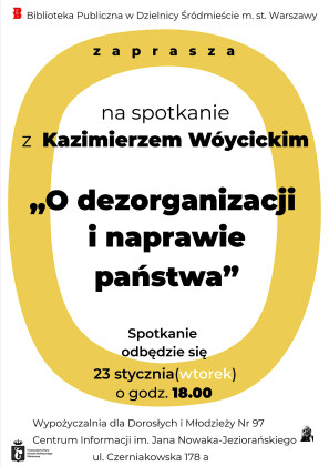 Biblioteka Publiczna w Dzielnicy Śródmieście m.st. Warszawy zaprasza na spotkanie z Kazimierzem Wóycickim pt.:"O dezorganizacji i naprawie państwa".