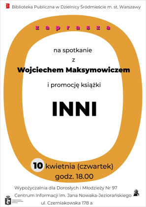 Biblioteka Publiczna w Dzielnicy Śródmieście m.st. Warszawy zaprasza na spotkanie z Wojciechem Maksymowiczem i promocję książki "Inni".
