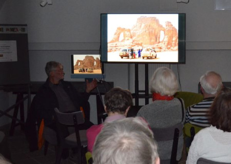 Sahara jest przykładem miejsc bezwodnych. Tadrart leżący na pograniczu Algierii i Libii jest jednym z jej najbardziej suchych, ale i malowniczych regionów. To obszar pełen nie tylko piaszczystych wydm w odcieniach złota, pomarańczy, i czerwieni, ale i skalistych grzbietów oraz kamiennych płaskowyżów. Skaliste zbocza pokryte malowidłami zwierząt żyjących na sawannie, są imponującym świadectwem obecności człowieka od 12 tysiąclecia p.n.e. Relacja Janusza Szewczyka udokumentowana przepięknymi zdjęciami Autora, była opowieścią nie tylko o pustyni, ale także o historii i teraźniejszości Algierii.