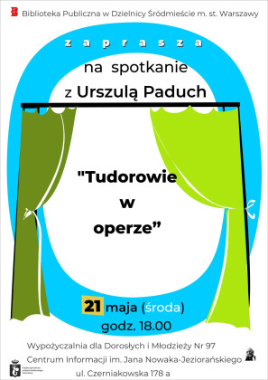 Biblioteka Publiczna w Dzielnicy Śródmieście m.st. Warszawy zaprasza na spotkanie z Urszulą Paduch pt. "Tudorowie w operze".
