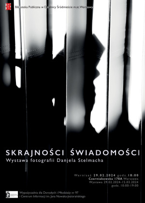Biblioteka Publiczna w Dzielnicy Śródmieście m.st. Warszawy zaprasza na wystawę fotografii Danjela Stelmacha "Skrajności świadomości" w Centrum Informacji im. Jana Nowaka Jeziorańskiego przy ul. Czerniakowskiej 178 A.