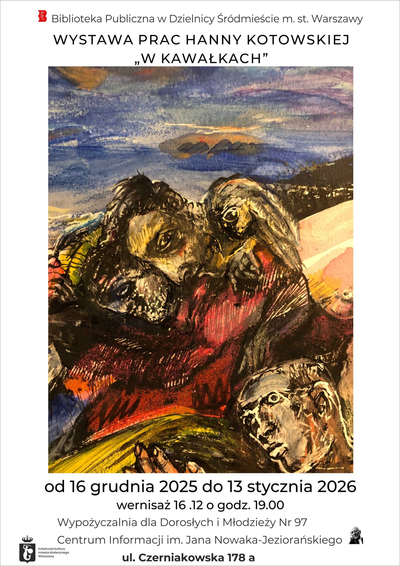 Biblioteka Publiczna w Dzielnicy Śródmieście m.st. Warszawy zaprasza na wystawę prac Hanny Kotowskiej "W kawałkach".