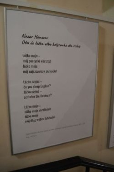 Wystawa prezentuje wiersze i wybrane fragmenty tekstów twórców ukraińskich w polskich tłumaczeniach. Wszystkie pozycje dostępne są w księgozbiorze Czytelni Naukowej nr VII, której pracownicy wraz z koleżankami z Książki na Telefon dokonali stosownego wyboru.