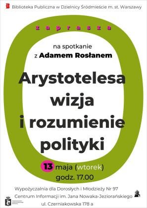 Biblioteka Publiczna w Dzielnicy Śródmieście m.st. Warszawy zaprasza na wykład Adama Rosłana pt. "Arystotelesa wizja i rozumienie polityki".