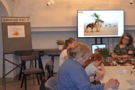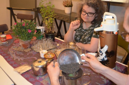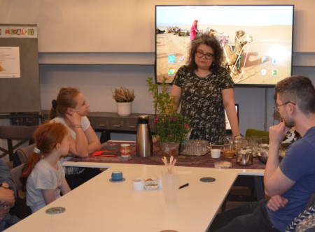 25 maja gościnią Towarzystwa Pełnej Czarki i Czytelni Naukowej Nr VII była Paula Kowalczyk, która zaprosiła uczestników spotkania na herbatę po marokańsku. "Berber whisky" była nie tylko degustacją, ale także jej relacją z podróży do tego kraju, była opowieścią o historii, geografii oraz kulturze, o zwyczajach mieszkańców i ich życiu codziennym. Prelegentka zadbała o atmosferę spotkania. Zdjęcia z wyprawy, marokańska muzyka ludowa w tle, pyszne ciasteczka i inne smakołyki z Maroka przeniosły nas na piaski Sahary, do oazy i małych marokańskich miasteczek. Było wiele pytań gości i odpowiedzi z dystansem i humorem.