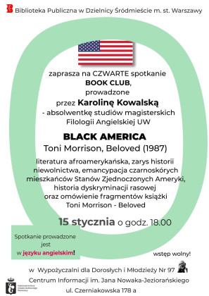 Na spotkaniu Black America 15 stycznia o godzinie 18:00 omówimy fragmenty książki Toni Morrison - Beloved.