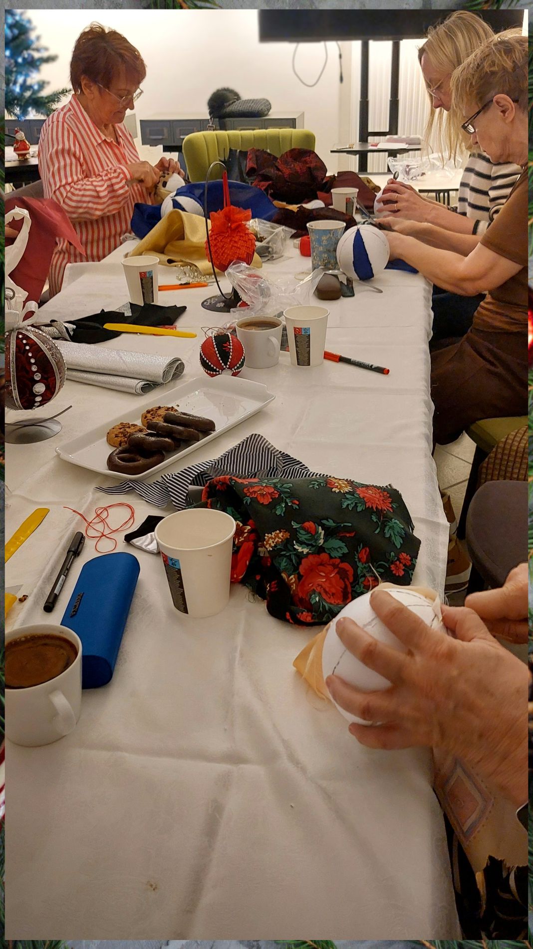 Warsztaty przebiegały w ciepłej, radosnej atmosferze, a wspólna praca stała się okazją do rozmów, wymiany doświadczeń i poczucia twórczej satysfakcji. Powstałe ozdoby są już gotowe, by zawisnąć na świątecznej choince lub zostać wręczone komuś bliskiemu jako wyjątkowy, własnoręcznie wykonany prezent.