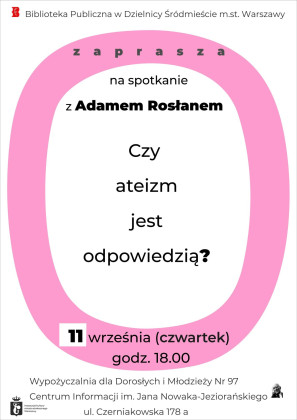 Biblioteka Publiczna w Dzielnicy Śródmieście m.st. Warszawy zaprasza na wykład Adama Rosłana pt. "Czy ateizm jest odpowiedzią?".