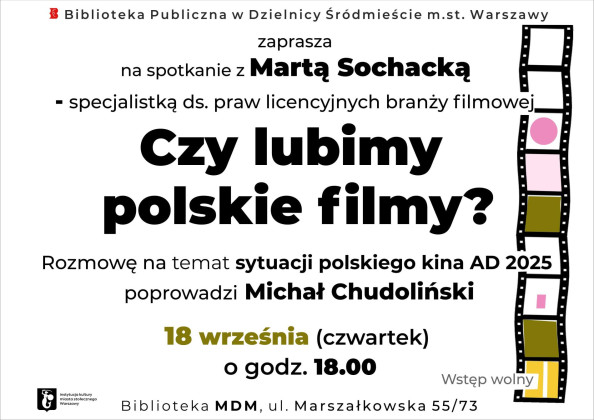 Biblioteka Publiczna w Dzielnicy Śródmieście m.st. Warszawy zaprasza na spotkanie z Martą Sochacką - specjalistką ds. praw licencyjnych branży filmowej.