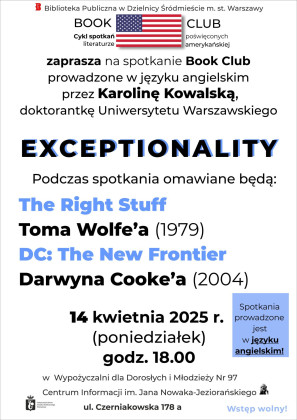 Biblioteka Publiczna w Dzielnicy Śródmieście m.st. Warszawy zaprasza na spotkanie Book Club prowadzone w języku angielskim przez Karolinę Kowalską, doktorantkę Uniwersytetu Warszawskiego.