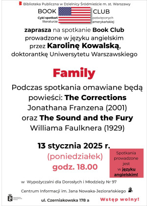 Podczas spotkania omawiane będą powieści: The Corrections Jonathana Franzena (2001) oraz The Sound and The Fury Williama Faulknera (1929).