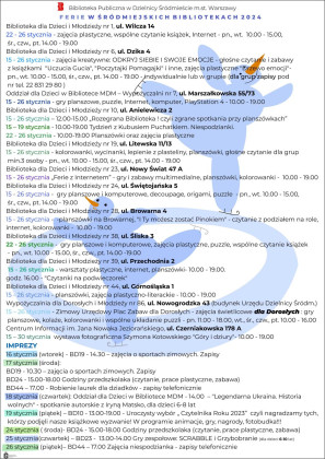 Zapraszamy na Ferie w śródmiejskich bibliotekach. Szczegółowy plan w pliku: Ferie 2024.