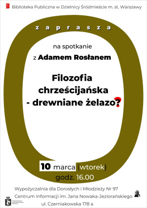 Biblioteka Publiczna w Dzielnicy Śródmieście m.st. Warszawy zaprasza na spotkanie z Adamem Rosłanem pt.: "Filozofia chrześcijańska - drewniane żelazo?"