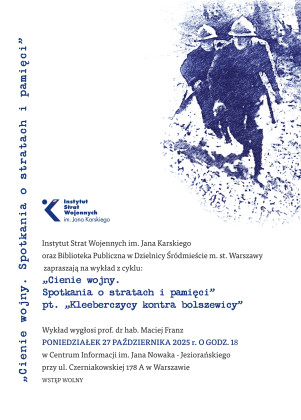 Instytut Strat Wojennych im. Jana Karskiego oraz Biblioteka Publiczna w Dzielnicy Śródmieście m.st. Warszawy zapraszają na wykład z cyklu "Cienie wojny. Spotkania o stratach i pamięci" pt. "Kleeberczycy kontra bolszewicy".