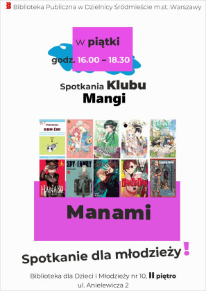 Dołącz do Klubu Mangi Manami – Spotkania w każdy piątek w godzinach 16:00-18:30.