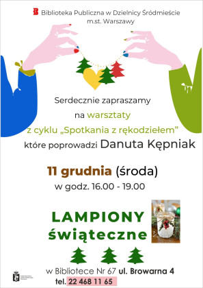 Biblioteka Publiczna w Dzielnicy Śródmieście m.st. Warszawy zaprasza na warsztaty rękodzieła - lampiony świąteczne z Danutą Kępniak.