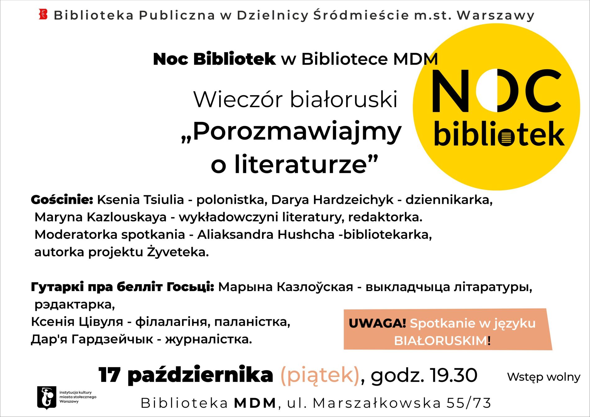 Zapraszamy na Noc Bibliotek w Bibliotece MDM i Wieczór Białoruski "Porozmawiajmy o literaturze".