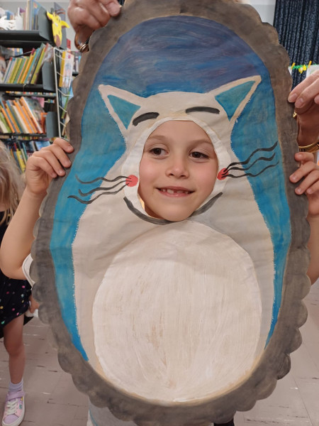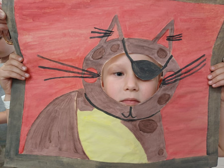 Na czerwcowych Poczytajkach towarzyszyliśmy Kociej Szajce, znanej z książek Agaty Romaniuk, w śledztwie mającym na celu odnalezienie przebiegłych fałszerzy toruńskich pierników. Próbując odgadnąć kto stoi za niecnym procederem, przyjrzeliśmy się metodom działania ekipy z Cieszyna. Z przyjemnością przygotowaliśmy portrety naszych kocich ulubieńców, a zajęcia zakończyła sesja zdjęciowa.