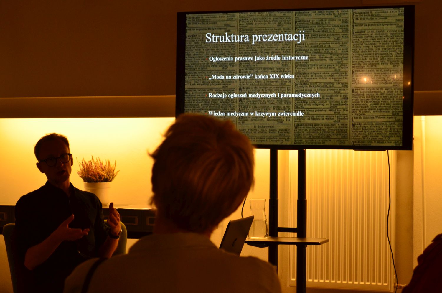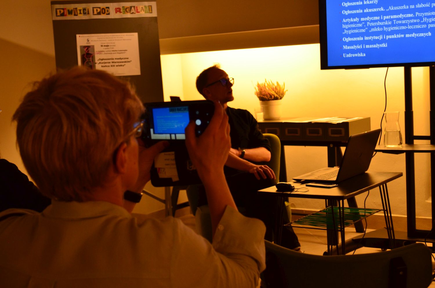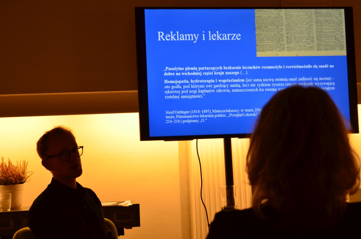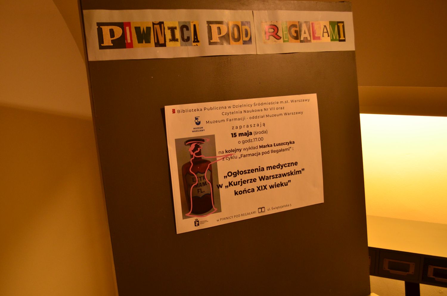 O tym czego można się dowiedzieć z ogłoszeń w gazecie opowiedział Marek Łuszczyk podczas czwartego już spotkania w cyklu „Farmacja pod Regałami” 15 maja 2024 roku. Cykl realizowany jest w „Piwnicy pod Regałami” przez Muzeum Farmacji (oddział Muzeum Warszawy) ul. Piwna 31/33 oraz Czytelnię Naukową Nr VII (Biblioteki Publicznej dla Dzielnicy Śródmieście m. st. Warszawy). Lektura ogłoszeń prasowych jest niezwykle intrygująca. To prawda płynąca zarówno z treści, stylu, grafiki, a także miejsca zamieszczonego ogłoszenia. Można wiele wnioskować o potrzebach zdrowotnych czytelników. Dzisiaj, gdy patrzymy z dystansem na oferowane usługi zdrowotne, musimy pamiętać o stopniu rozwoju cywilizacyjnego i społecznego na przełomie XIX i XX w. Była to bardzo ciekawa lekcja historii pobudzająca do refleksji o nas samych – współczesnych.