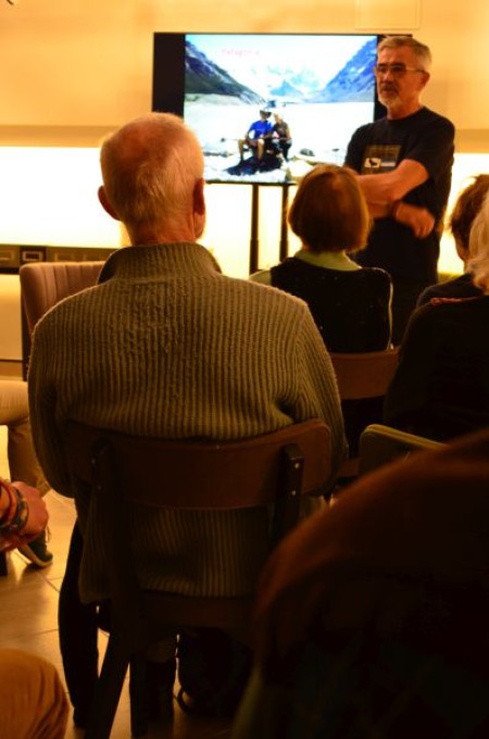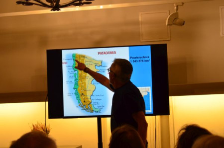 "Patagonia – mityczna kraina na końcu świata..." – tak zatytułował Wojciech Lewandowski swoją opowieść fundowaną na osobistym doświadczaniu miejsc i ludzi podczas trzech podróży na krańce kontynentu amerykańskiego. 18 kwietnia 2023 roku w "Piwnicy pod Regałami" mogliśmy posłuchać o "krainie wiatru", "dalekim południu", "wielkim pustkowiu". Obszary, które wymykają się swoim rozmiarem wyobraźni Europejczyka. Tereny, których historia budzi grozę jest pełna tajemnic. Opowieść ilustrowana fotografiami dawała przedsmak najnowszej książki autora "Patagonia – tam gdzie rodzi się wiatr", która została nominowana do nagrody w kategorii Literatura non-fiction w Konkursie Książka Górska Roku 2022. Można było się dowiedzieć wielu ciekawych, nieznanych dotąd rzeczy i rozbudzić motywację do podejmowania wypraw o jakich opowiedział ze swadą Wojciech Lewandowski.