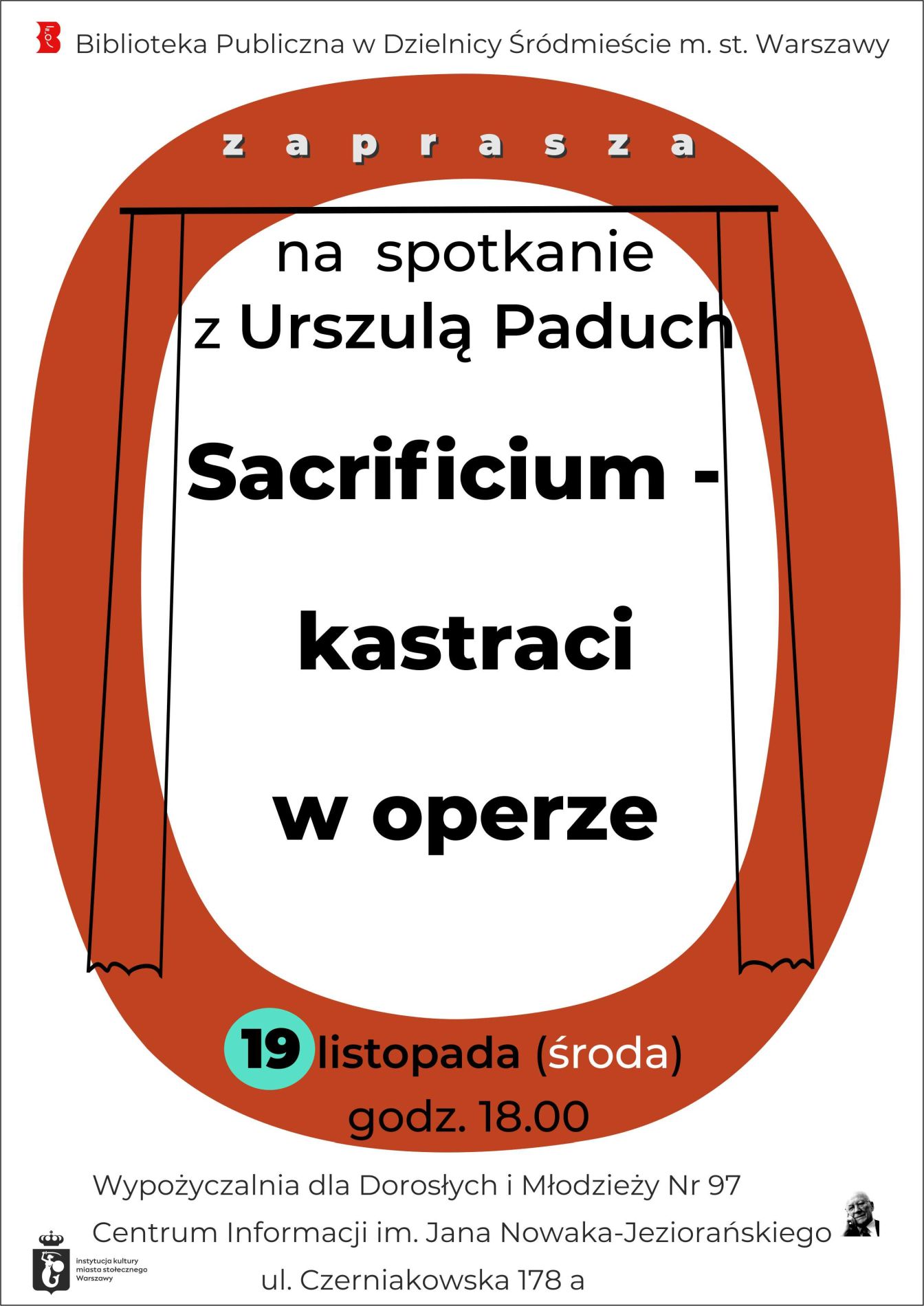 Biblioteka Publiczna w Dzielnicy Śródmieście m.st. Warszawy zaprasza na spotkanie z Urszulą Paduch pt. "Sacrificium - kastraci w operze".
