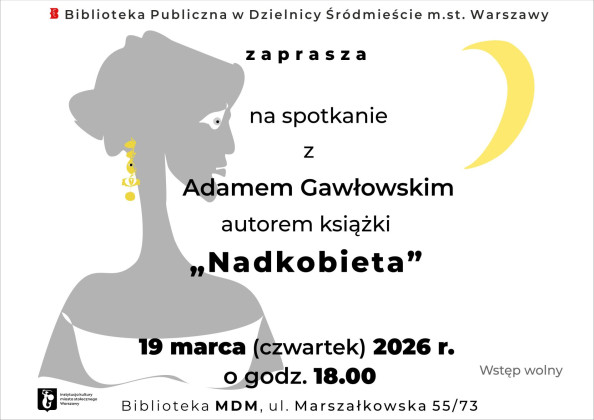 Spotkanie odbędzie się 19 marca o godzinie 18:00 w Bibliotece MDM przy ul. Marszałkowskiej 55/73.
