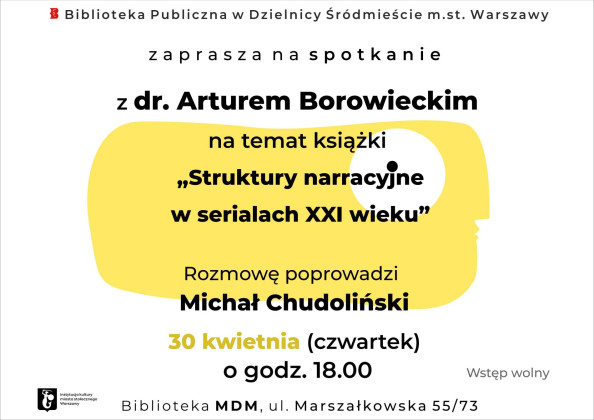 Biblioteka Publiczna w Dzielnicy Śródmieście m.st. Warszawy zaprasza na spotkanie z dr. Arturem Borowieckim na temat książki "Struktury narracyjne w serialach XXI wieku".