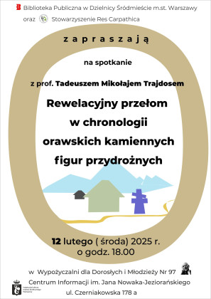 Biblioteka Publiczna w Dzielnicy Śródmieście m.st. Warszawy oraz Stowarzyszenie Res Carpathica zapraszają na spotkanie z prof. Tadeuszem Mikołajem Trajdosem pt. "Rewelacyjny przełom w chronologii orawskich kamiennych figur przydrożnych".
