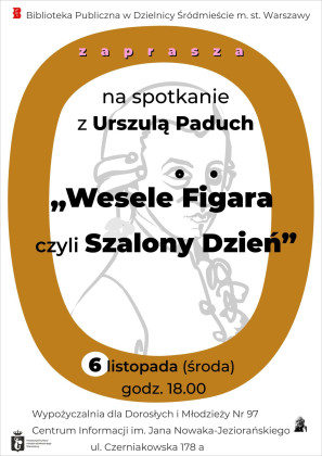 Biblioteka Publiczna w Dzielnicy Śródmieście m.st. Warszawy zaprasza na spotkanie z Urszulą Paduch pt. "Wesele Figara czyli Szalony Dzień".