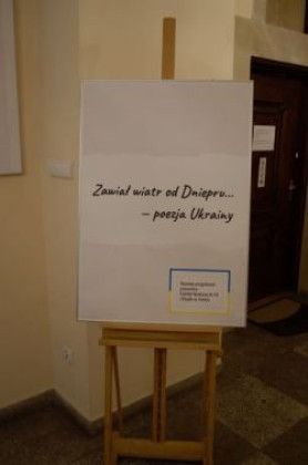 Wystawa prezentuje wiersze i wybrane fragmenty tekstów twórców ukraińskich w polskich tłumaczeniach. Wszystkie pozycje dostępne są w księgozbiorze Czytelni Naukowej nr VII, której pracownicy wraz z koleżankami z Książki na Telefon dokonali stosownego wyboru.