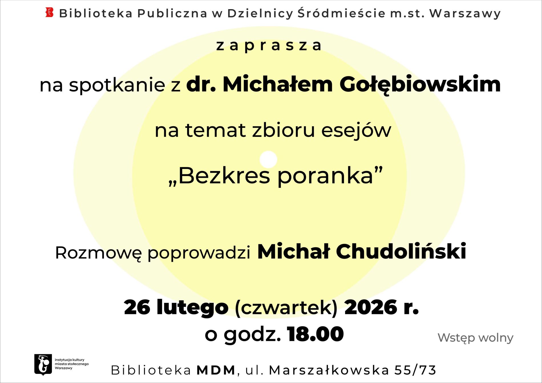 Rozwijanie i zaspokajanie potrzeb czytelniczych mieszkańców dzielnicy Śródmieście i Miasta Stołecznego Warszawy oraz upowszechnianie wiedzy i rozwoju kultury.